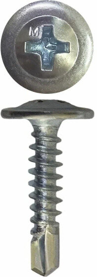 Саморез Daxmer Premium - с полусферической головкой и прессшайбой (ПШС) имеют широкую плоскую головку под крестовидную биту (PH2). Наконечник оцинкованный - сверло.