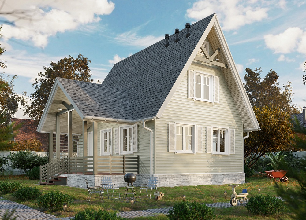 Красивый холодный оттенок в скандинавском стиле напоминает о красках северной природы. Благодаря геометрии профиля «ёлочка» сайдинг отлично имитирует отделку окрашенной вагонкой – визитную карточку скандинавской архитектуры. Сложный серо-голубой цвет приобретает особую глубину в сочетании со светлыми наличниками, углами и карнизами.